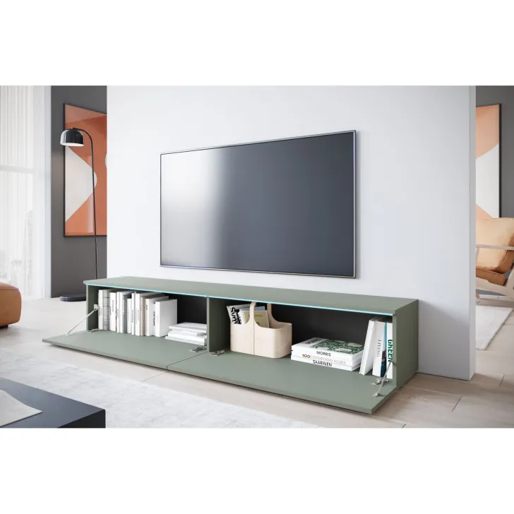 Niewątpliwie, jednym z największych atutów Szafki RTV DONNA 180 cm jest jej praktyczność. Wygodne przechowywanie sprzętu RTV oraz drobnostek jest możliwe dzięki dwóm schowkom, ukrytym za drzwiami otwieranymi z góry do dołu w systemie klap. To doskonałe rozwiązanie do przechowywania nie tylko sprzętu RTV, ale także zdjęć, pudełek, które zawsze gubią się po domu.