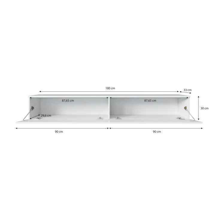 Właściwie dobrana Szafka RTV DONNA 180 cm wprowadzi do Twojego salonu czy pokoju młodzieżowego zdecydowanie więcej nowoczesności i funkcjonalności. Szafka może służyć zarówno jako mebel stojący, co jest idealnym rozwiązaniem dla miłośników klasycznych aranżacji, jak i wiszący. Umocowana na ścianie szafka niesie ze sobą nutę nowoczesności oraz wizualną lekkość.