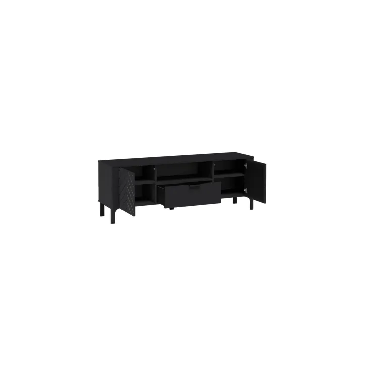 Niezwykle funkcjonalna szafka RTV oferuje dużo miejsca do przechowywania, dzięki dwóm zamykanym szafkom z pojemnymi półkami oraz szufladzie, która idealnie sprawdzi się do przechowywania drobnych akcesoriów. Dodatkowo, otwarta, praktyczna wnęka to doskonałe miejsce na dekoder czy ulubione książki.