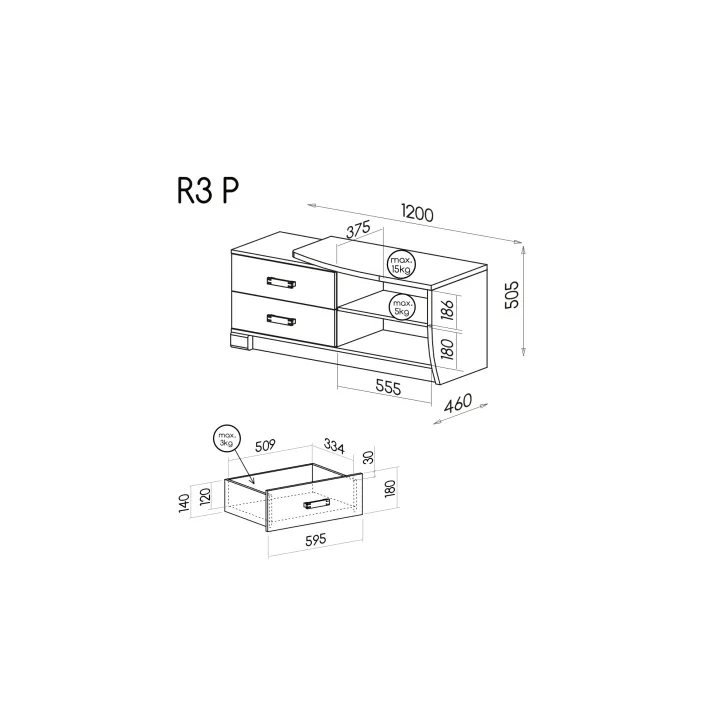 • Wysokiej jakości płyta meblowa jako główny materiał