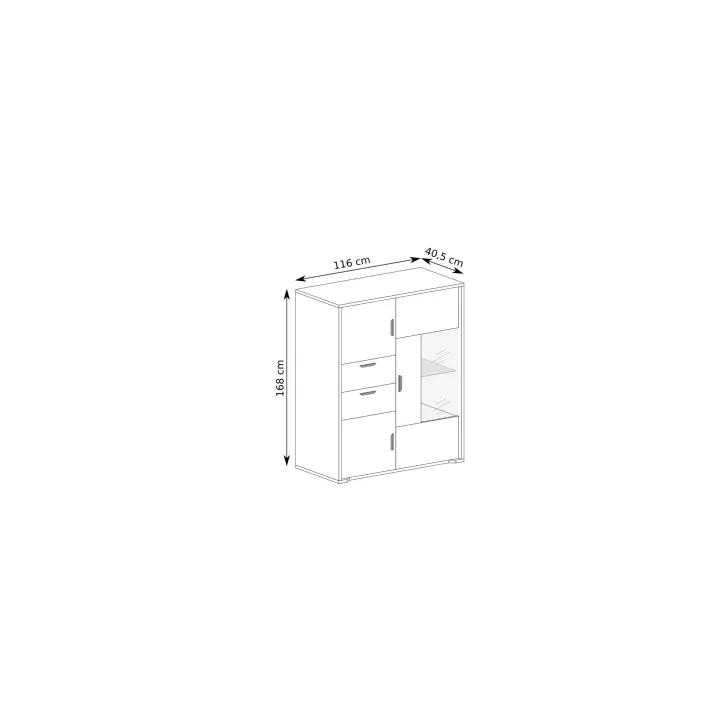 Witryna została zaprojektowana z myślą o eleganckiej ekspozycji i praktycznym przechowywaniu. Zawiera szklaną półkę, na której możecie Państwo wyeksponować ulubione dekoracje. Dodatkowo, zamknięta część mebla, w której znajdują się szuflady oraz półki za pełnymi frontami, pomieści więcej niż myślicie, oferując również miejsce na drobne akcesoria. Co więcej, subtelnie zaokrąglone krawędzie w dolnej części mebla oraz dyskretne uchwyty dodają naturalnej stylistyki czyniąc ten mebel naprawdę wyjątkowym.