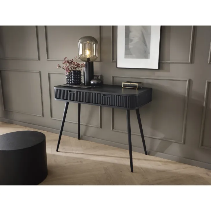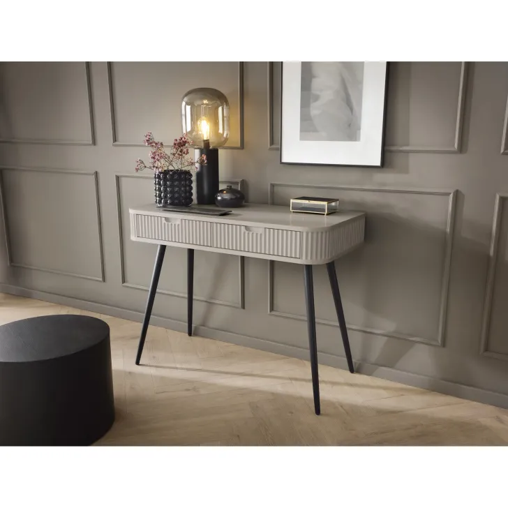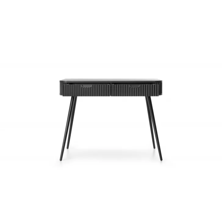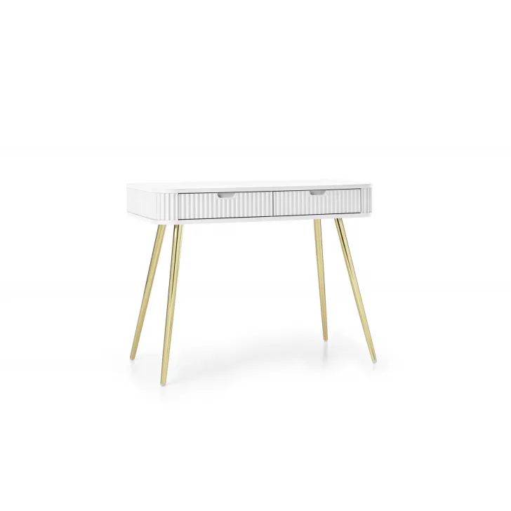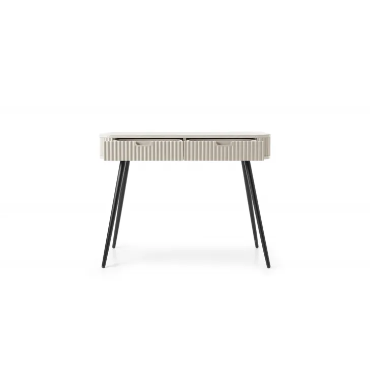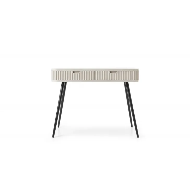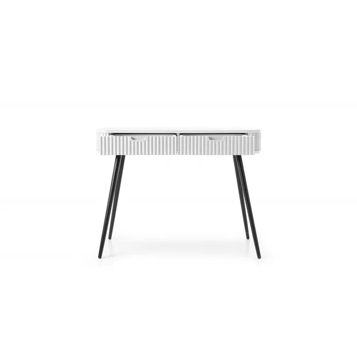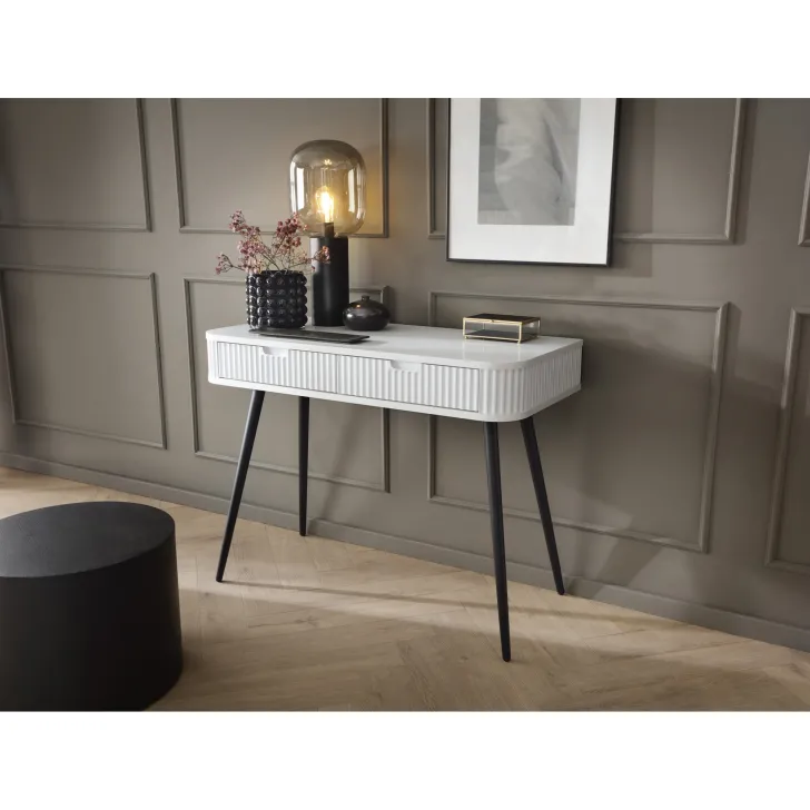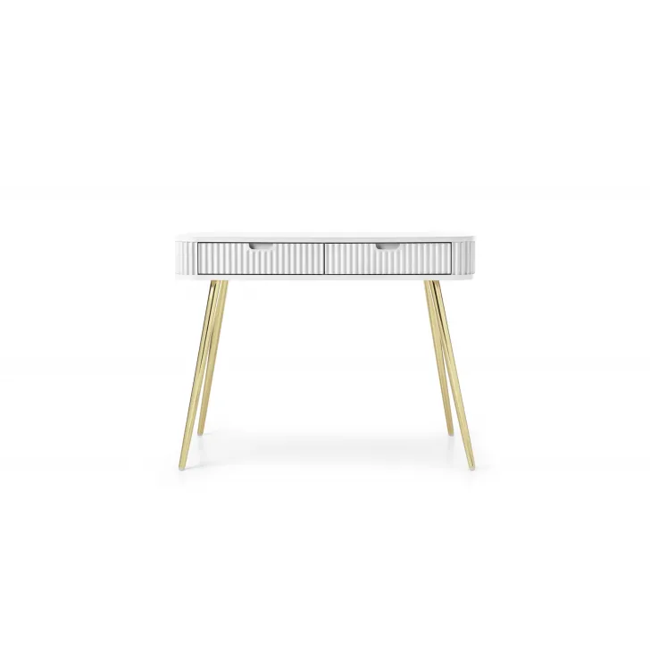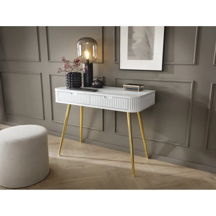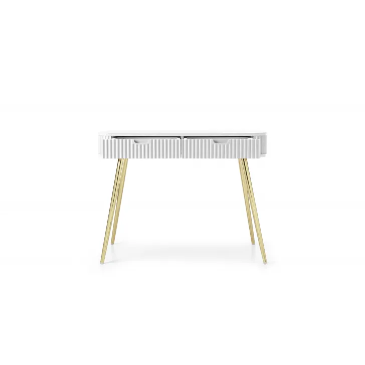 Zaprezentuj swoją indywidualność i wyrafinowany gust dzięki doskonale zaprojektowanej Toaletce ZOYA z ryflowanymi frontami. Ten nowoczesny mebel pełni funkcję zarówno toaletki kosmetycznej, jak i biurka, co czyni go idealnym wyborem do sypialni lub biura. ZOYA jest wspaniałym połączeniem funkcjonalności i estetyki, które odświeża wnętrze i sprawia, że staje się niepowtarzalne i eleganckie.