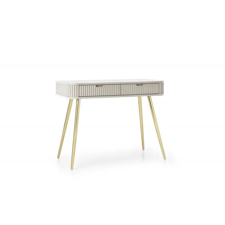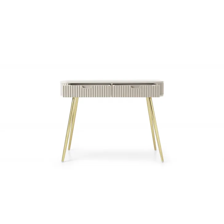 ZOYA dostępna jest w różnych wersjach kolorystycznych: beżowy, biały i czarny. Możesz też wybierać między złotymi i czarnymi nóżkami, aby dopasować toaletkę do swojego wnętrza.
