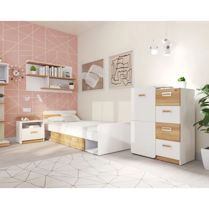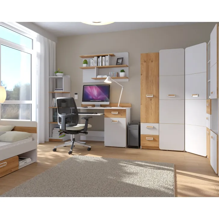 - Uniwersalny styl - Bez względu na to, czy jesteś fanem nowoczesnej czy tradycyjnej estetyki, ta półka doda twojemu wnętrzu wyjątkowego charakteru. Dąb Nash / Biały Brylantowy to chwytliwa kompozycja, która sprawdzi się w salonie, sypialni, biurze, a nawet w przedpokoju.