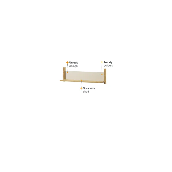 Wisząca półka ENNY charakteryzuje się uniwersalną kolorystyką – kombinacją dębu artisan, koloru beżowego oraz truflowego, co umożliwia jej wpasowanie się w niemal każdą aranżację pomieszczenia. Poprzez połączenie kilku oferowanych półek, masz możliwość kreatywnego zagospodarowania wolnej przestrzeni na ścianie.