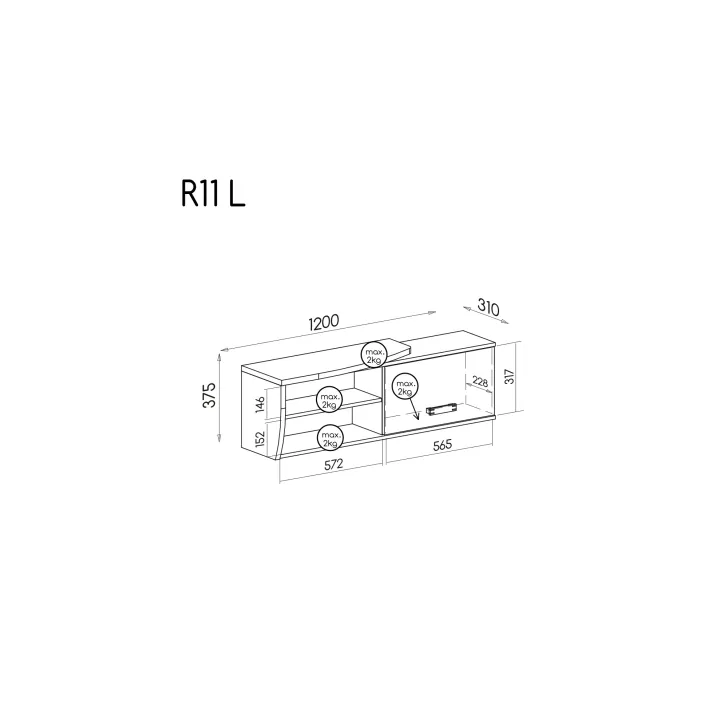Wymiary Wisząca szafka Romeo Lewa Dąb Canyon / Arusha