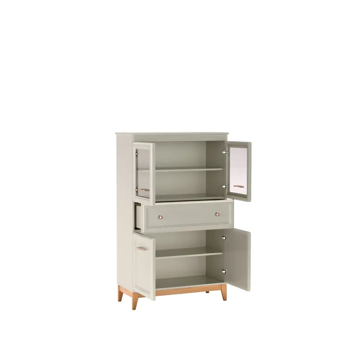 Jesteśmy przekonani, że Witryna DUBAI 5 doskonale sprawdzi się zarówno w salonie, jadalni jak i gabinecie, dodając im przytulności i wyrafinowania. Dzięki przemyślanej formie witryny, możliwe jest ekspozycja zarówno zastawy stołowej, książek, jak i różnego rodzaju dodatków dekoracyjnych. Z przeszkloną górną częścią mebla, wszystko będzie dobrze widoczne i prezentowało się wspaniale.
