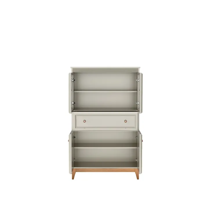 Stylowe uchwyty w kolorze miedzi to detal podkreślający nasz mebel. Dopełniają one cały projekt, dodając unikalnego charakteru. Dodając do tego stabilne nogi z litego drewna dębowego, mamy gwarancję trwałości i naturalnego piękna tego niezwykłego modelu.
