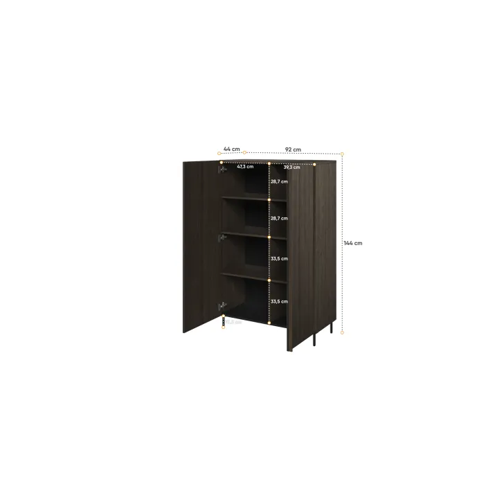 Do produkcji komody wykorzystano laminowaną płytę meblową, która zapewnia jej długotrwałość i wytrzymałość na różne uszkodzenia. Ponadto, zestaw zawiera także puszkowe zawiasy oraz uchwyty wykonane z listwy MDF. To potwierdza, że Wysoka komoda Impera to nie tylko styl, ale przede wszystkim jakość.
