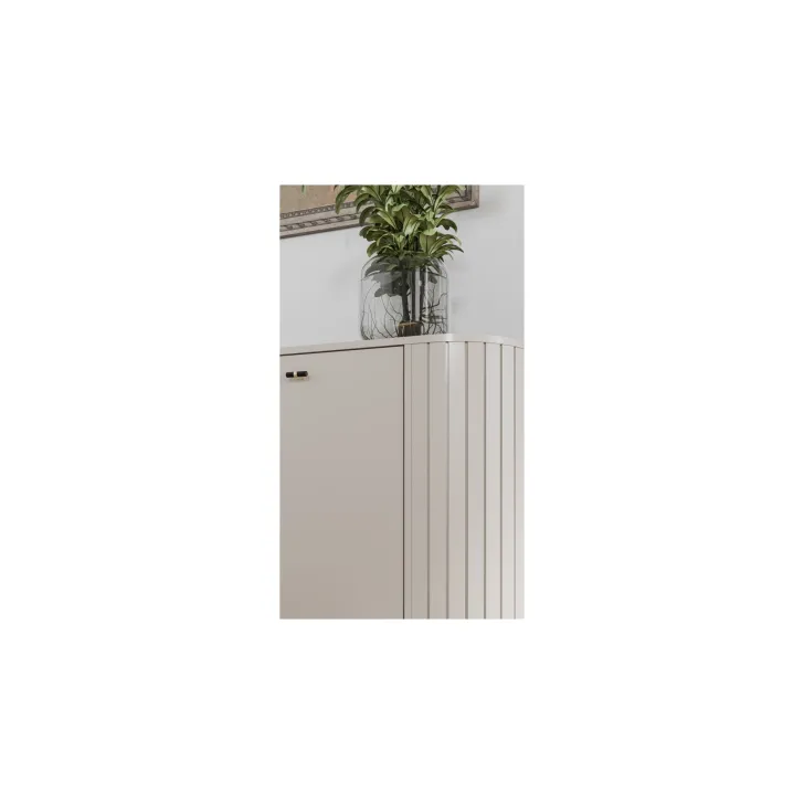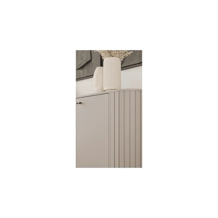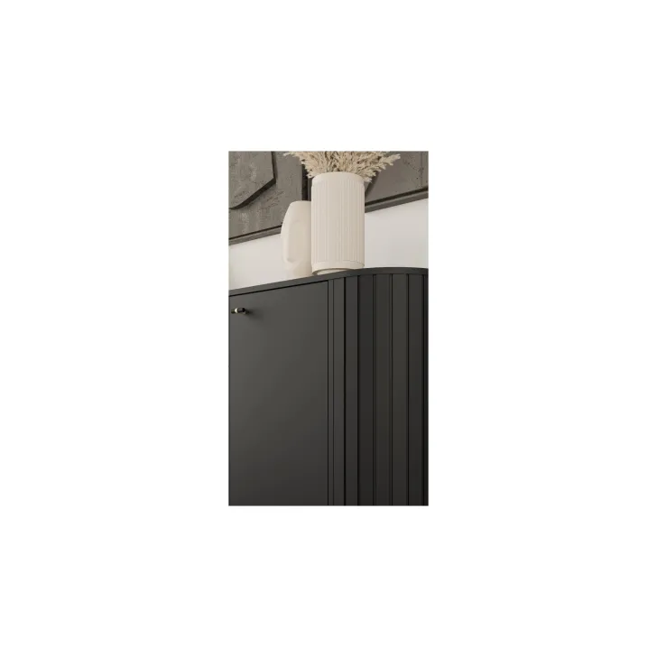 Zwraca uwagę wysokiej jakości wykonanie - zaokrąglone boki z MDF oraz korpus i tył z płyty laminowanej o grubości 16 mm to gwarancja trwałości i niezwykłej estetyki. Projekty serii ZAMA 1 charakteryzują się nowoczesnym designem oraz subtelnymi nóżkami i uchwytami w tonacji czarno-złotej, które dodają meblom nie tylko lekkości, ale również ekskluzywnego wyglądu.