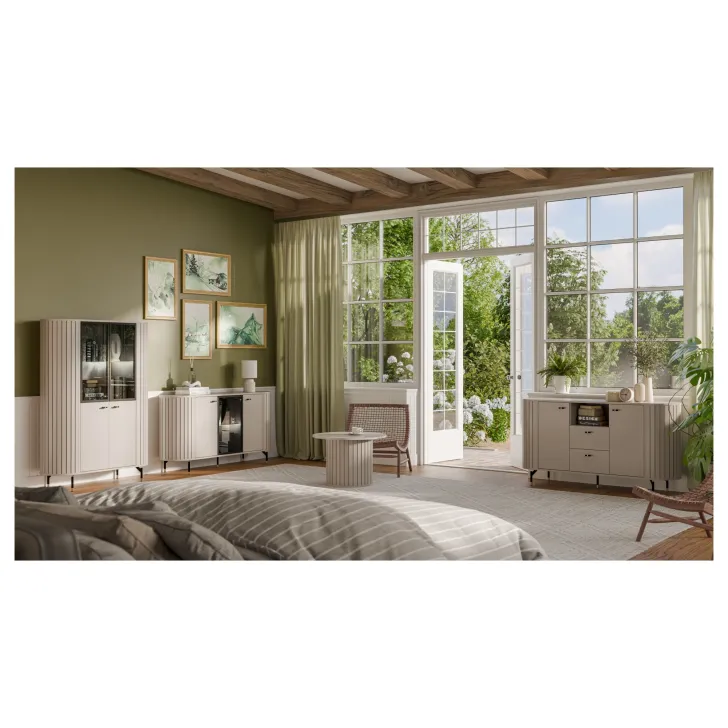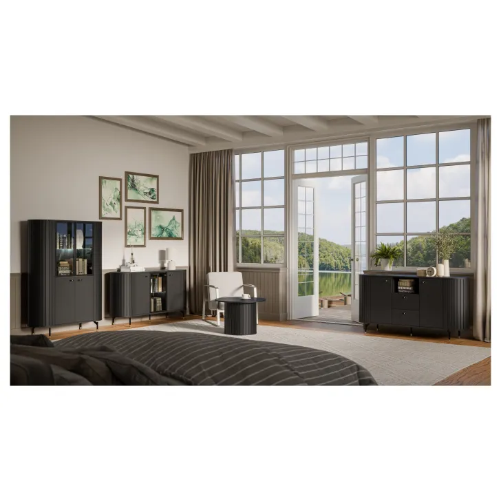 Na ten wyjątkowy mebel polują wszyscy miłośnicy nowoczesnego stylu. Przedstawiamy wysoką witrynę serii ZAMA 1, która doskonale wkomponuje się w każde, nawet najbardziej wymagające wnętrze. Jej elegancka konstrukcja przeszklonych drzwi sprawi, że pomieszczenie nabierze prawdziwego szyku.
