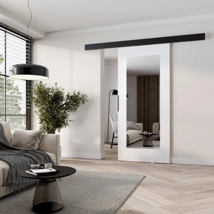 Rozwiązanie to jest idealnym wyborem dla tych, którzy szukają innowacyjnych rozwiązań w swoim domu. Drzwi przesuwne "PRIM I" zapewniają nie tylko oszczędność miejsca, ale także elegancję i estetykę. Na front drzwi umieszczone jest lustro, co dodatkowo podkreśla ich styl i ułatwia codzienne korzystanie.