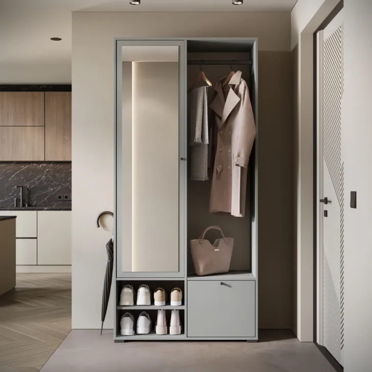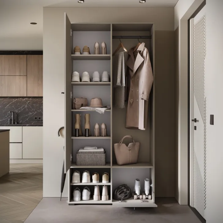 - Otwarte wnęki i praktyczna szafka na buty