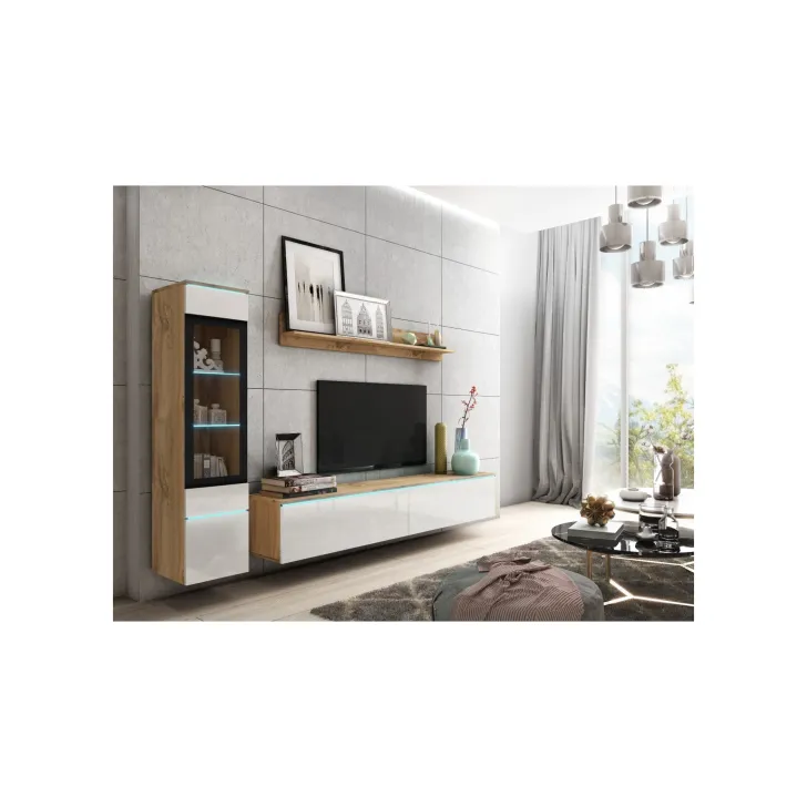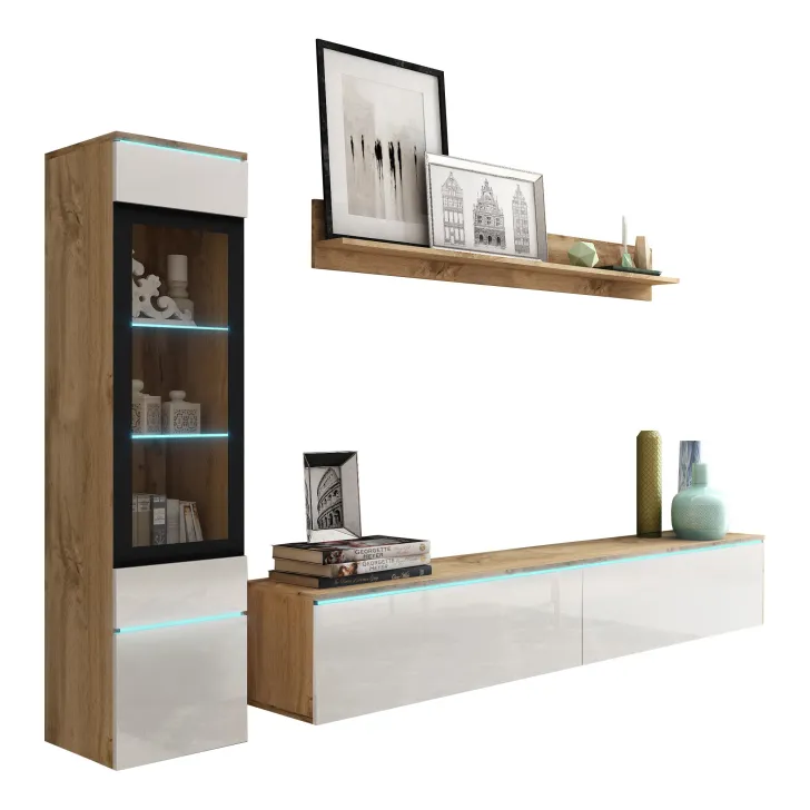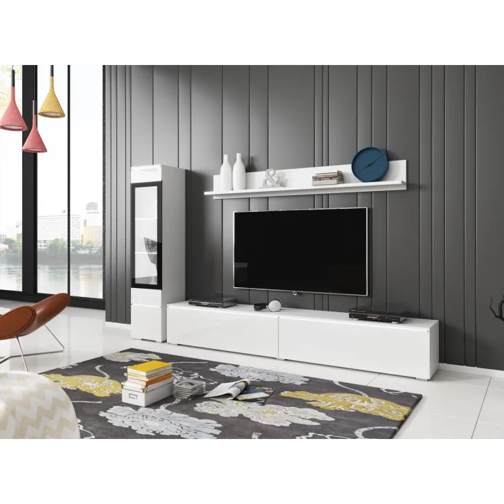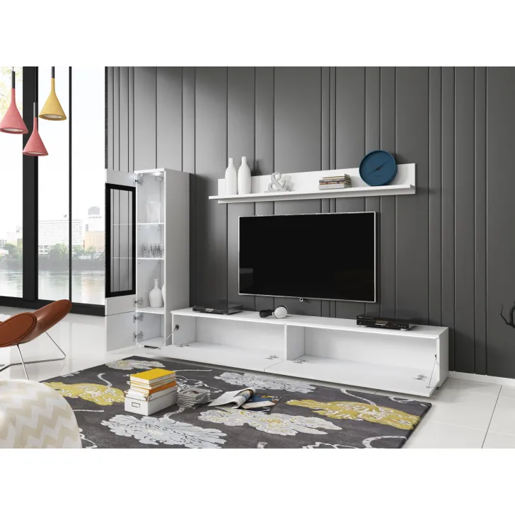 Wybierz Nowoczesną białą meblościankę - Veve I, która sprawi, że Twój salon stanie się miejscem pełnym stylu i funkcjonalności!