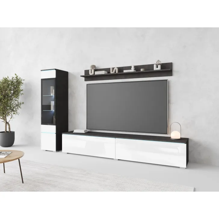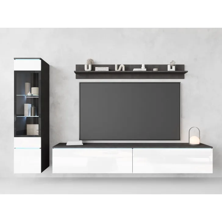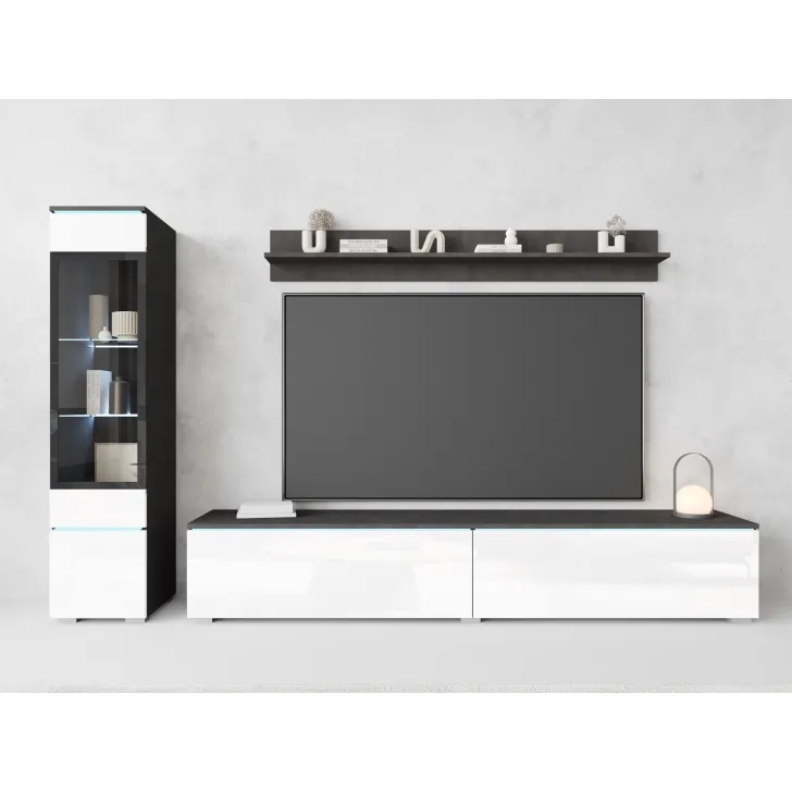 Meblościanka PARMA kolor grafit Matera / biały połysk