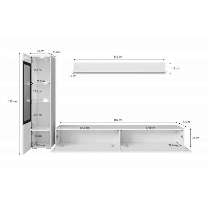 Wymiary Nowoczesnej białej meblościanki - Veve I do salonu: