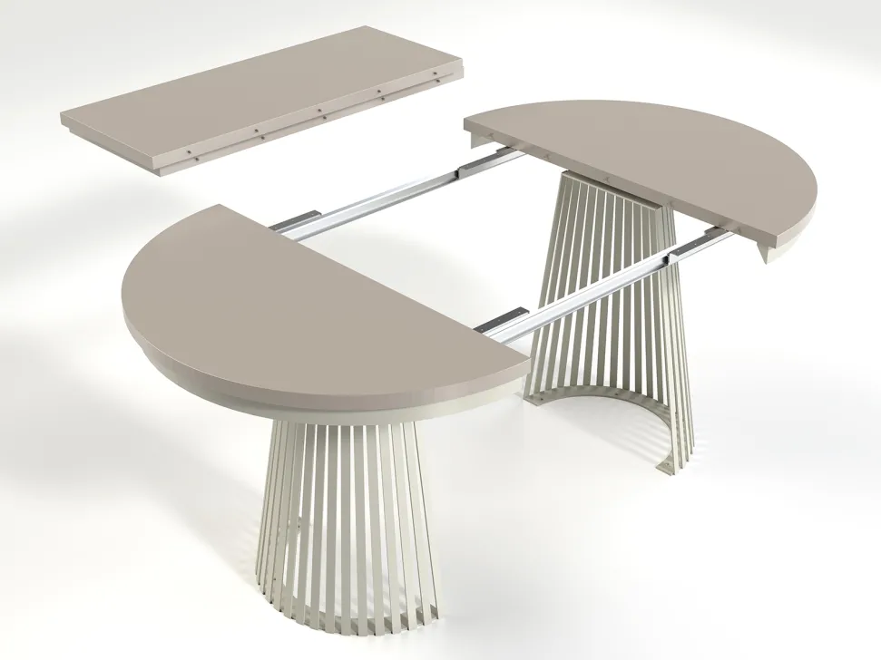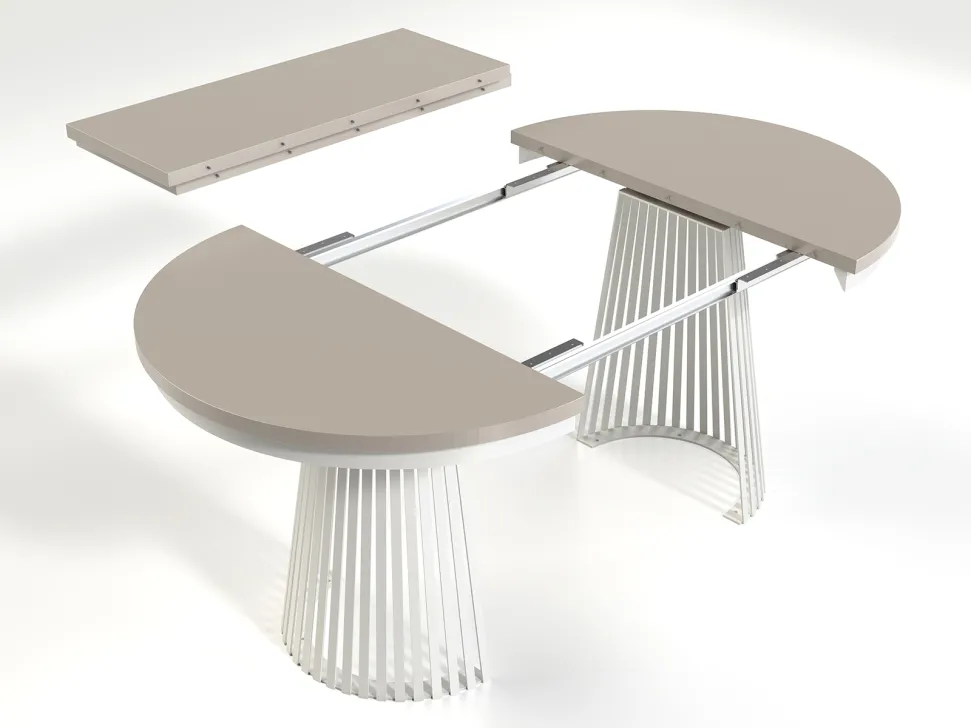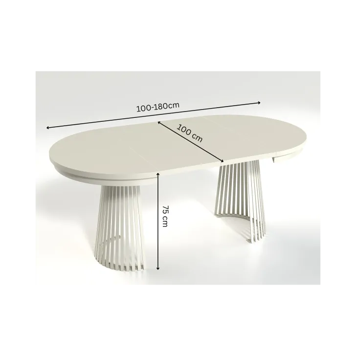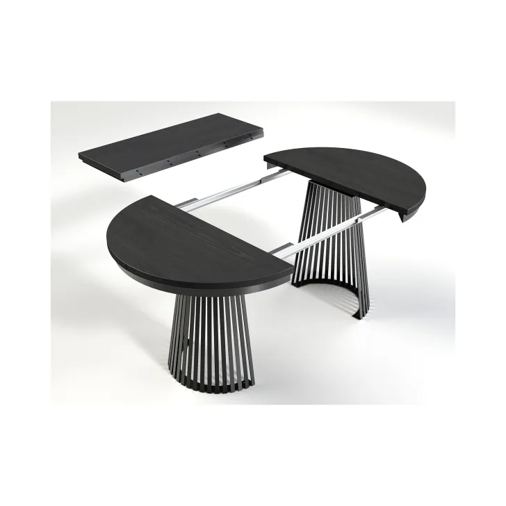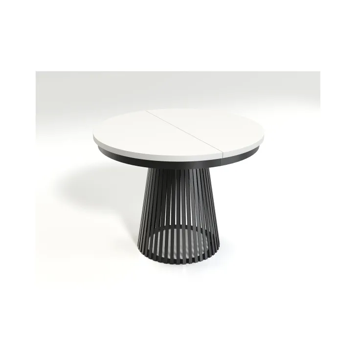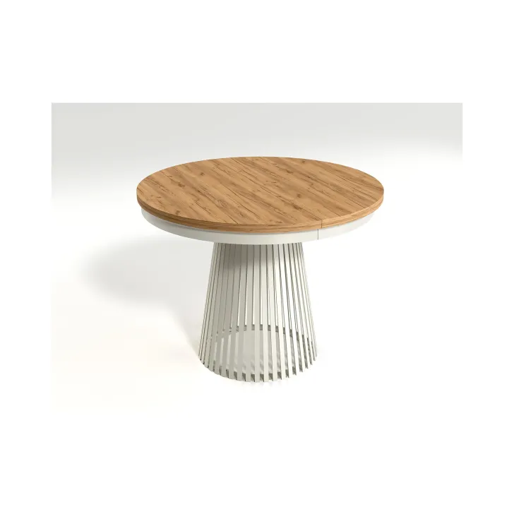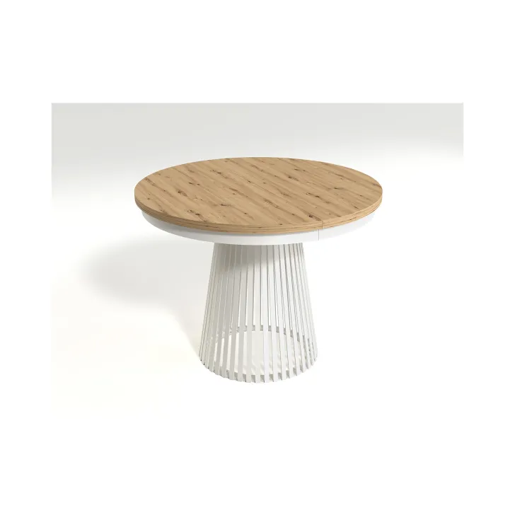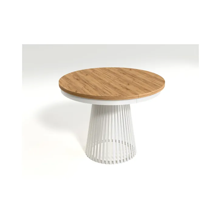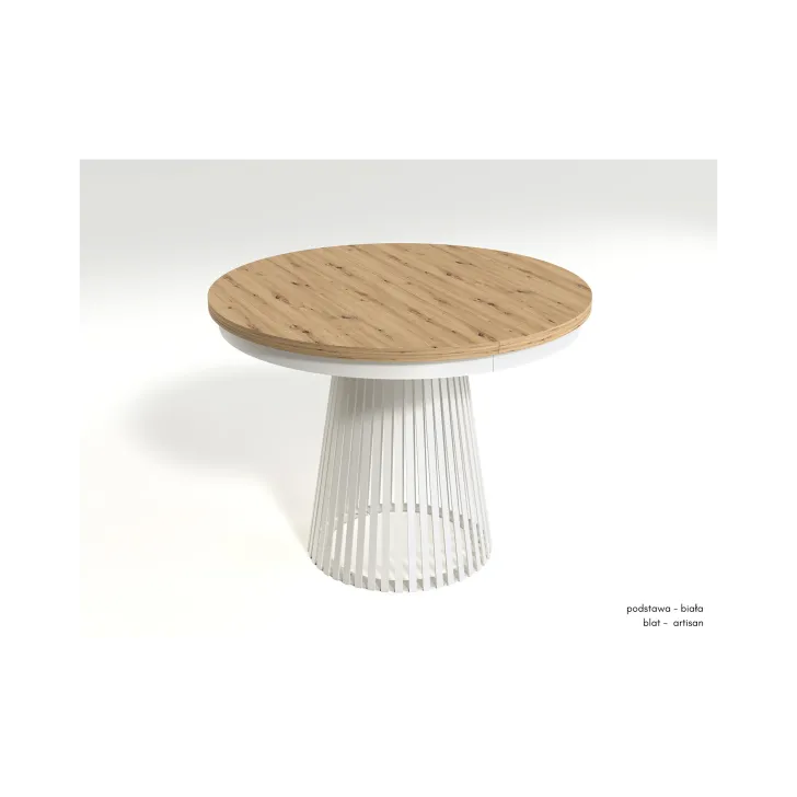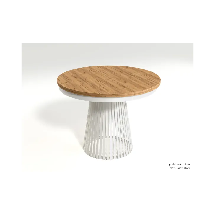 • Praktyczność: Blat stołu można powiększyć za pomocą wkładki, co pozwala na komfortowe korzystanie nawet wtedy, kiedy przyjmuje się większą liczbę gości.