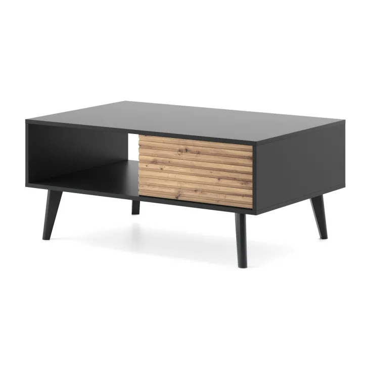 - Estetyczny, czarny matowy kolor stolika z ozdobnym frontem MDF, w kolorze dąb Artisan,