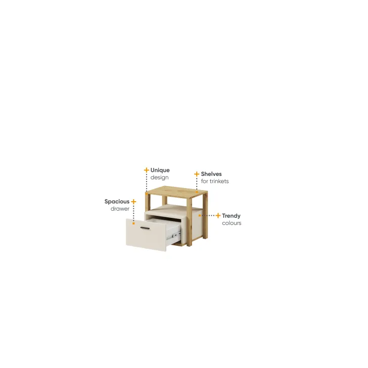Dodatkowo, stolik z kolekcji Enny posiada obszerne miejsce na blat, na którym bez problemu umieścisz wszystko co chcesz mieć pod ręką. Od lampki nocnej, przez budzik, aż po ulubione książki czy kwiaty. Natomiast pojemna szuflada zapewnia dodatkową przestrzeń na przechowywanie najpotrzebniejszych przedmiotów.