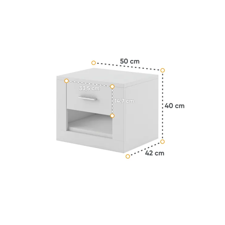 Dodaj do swojej sypialni nie tylko funkcjonalność, ale także klasykę i elegancję z naszym stolikiem nocnym ERTA 7 w kolorze białym. Idealnie zaprojektowany z myślą o Twojej wygodzie, stolik nocny ERTA ma wystarczająco dużą przestrzeń, aby pomieścić lampkę nocną, budzik i inne przedmioty, które chcesz mieć pod ręką.