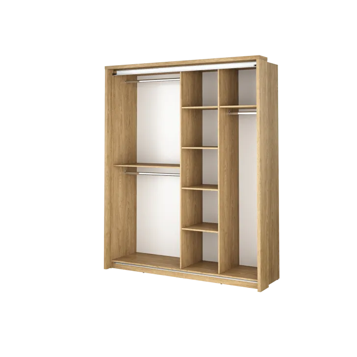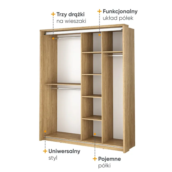 • Trzy drążki na ubrania i kilka pojemnych półek zapewniają łatwość zorganizowania i przechowywania różnorodnych elementów garderoby.
