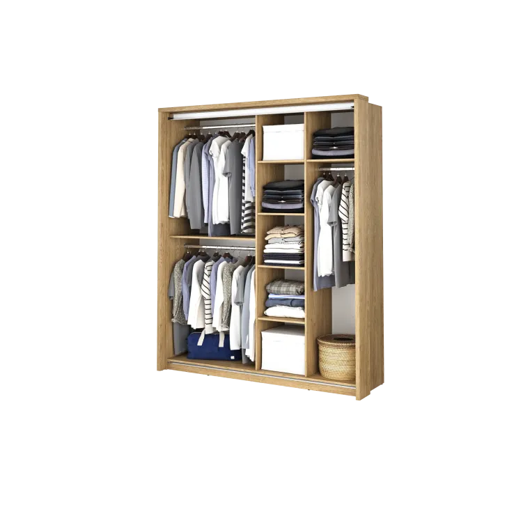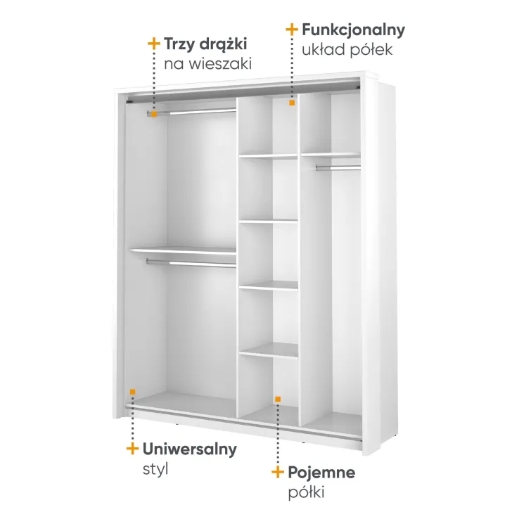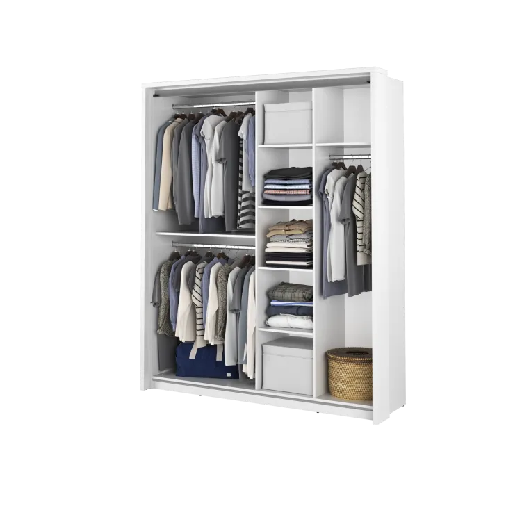 • Mechanizm drzwi przesuwnych zapewnia łatwy dostęp do wszystkich ubrań, niezależnie od ich rozmieszczenia w szafie.