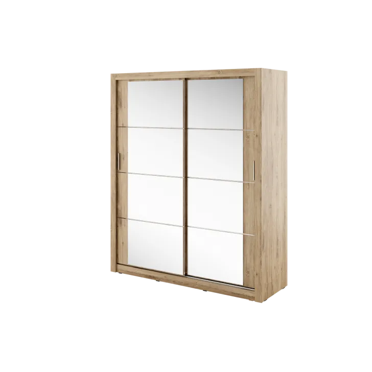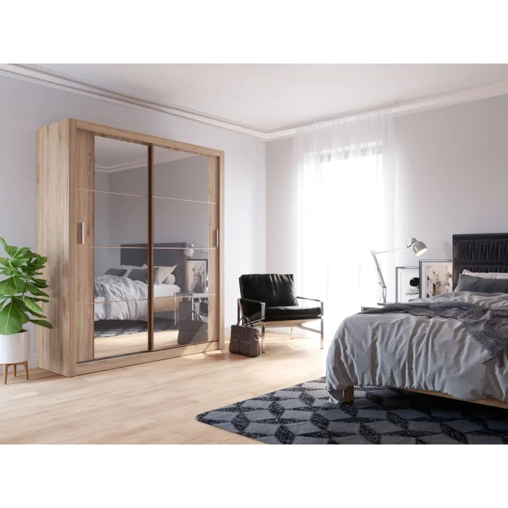 Zadbaliśmy o to, by zestawienie funkcjonalności z estetycznym wykonaniem sprzyjało tworzeniu przyjaznych i uporządkowanych wnętrz. Dlatego w szafie ERTA 3 znajduje się też lustro na drzwiach, które nie tylko dodaje wnętrzu światła, ale również ułatwia codzienne stylizacje i pozwala zaoszczędzić cenny czas przed wyjściem z domu.