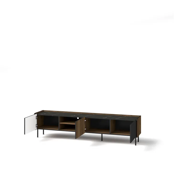 • Funkcjonalność: Szafka RTV oferuje wiele miejsca do przechowywania z otwartymi wnękami i półkami na całej długości, co daje wiele możliwości przechowywania i dekoracji.