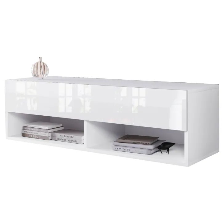 Dodatkowym atutem szafki są eleganckie fronty o wysokim połysku, które nadają całości nowoczesnego i stylowego charakteru. Możesz wybierać pomiędzy opcją wiszącą lub stojącą szafki, dzięki czemu dostosujesz mebel do swoich indywidualnych preferencji i wielkości salonu. Doskonałe wykonanie i subtelne detale tworzą harmonijną całość, idealną dla tych, którzy cenią wyrafinowany styl i dobrej jakości produkty.