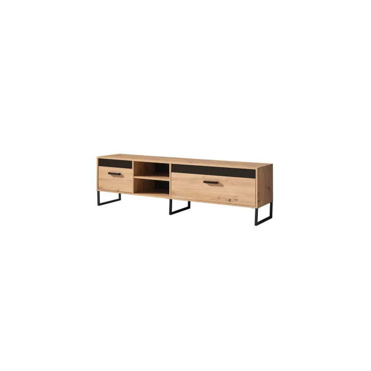 Design mebla to sprytna kombinacja czarnych, metalowych nóżek i uchwytów z tylną ścianką utrzymaną w tym samym kolorze. Wszystko to pięknie kontrastuje z kolorystyką dąb artisan, tworząc efektowny i prosty design loftowy.