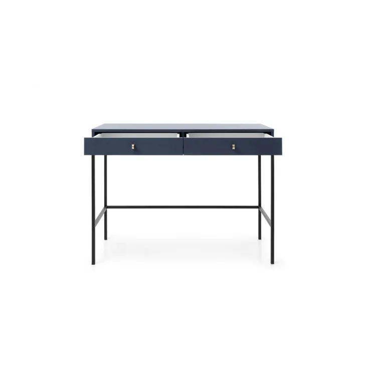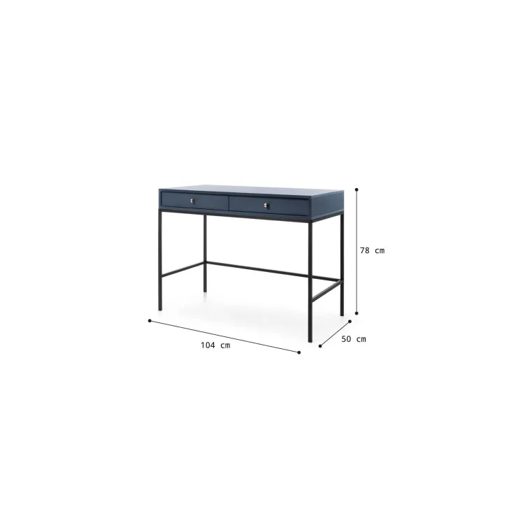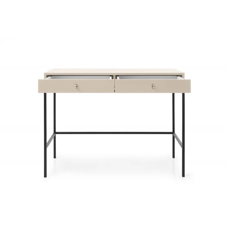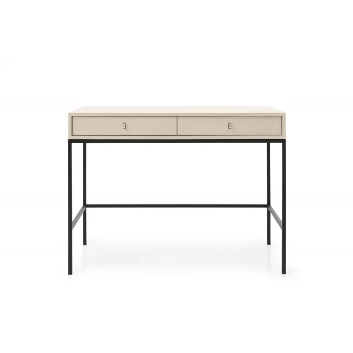 Toaletka "MINIMAL" na metalowych nogach jest nie tylko stylowa, ale także funkcjonalna - wyposażona jest w dwie wygodne szuflady, które mają wiele miejsca na przechowywanie wszystkich Twoich ulubionych kosmetyków lub biurowych akcesoriów, w zależności od tego, czy zdecydujesz się używać jej jako biurka czy też tradycyjnej toaletki.