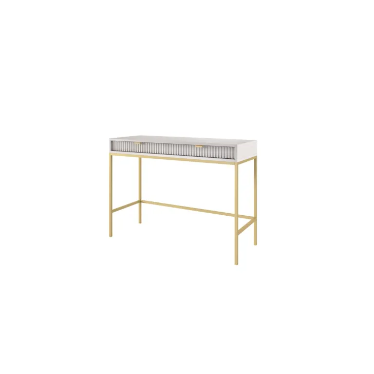 Odkryj fascynującą toaletkę NOVA, doskonałym połączeniem style, funkcjonalności i wytrzymałości. Te nowoczesne meble mogą z łatwością przekształcić się ze stylizowanej toaletki do funkcjonalnego biurka, co czyni je idealnym rozwiązaniem zarówno do sypialni, jak i biura. Jest to uniwersalny mebel, który może dostosować swój wygląd do twoich gustów i potrzeb. Dzięki możliwości personalizacji klamek i koloru nóg, toaletka NOVA pozwoli wyrazić swój unikalny styl. Wybierz spośród pięciu kolorów (biały, szary, czarny, zielony) jedną z dwóch opcji kolorów nóg (czarny, złoty) oraz dwóch kolorów klamek (złoty, czarny). Do produkcji toaletki NOVA użyto tylko solidnych materiałów, takich jak:
