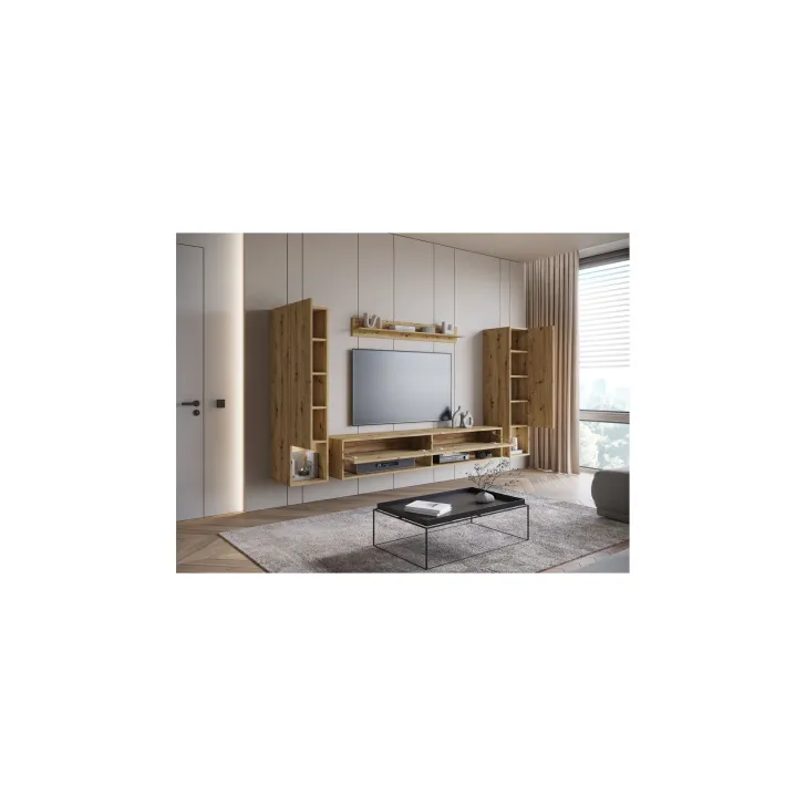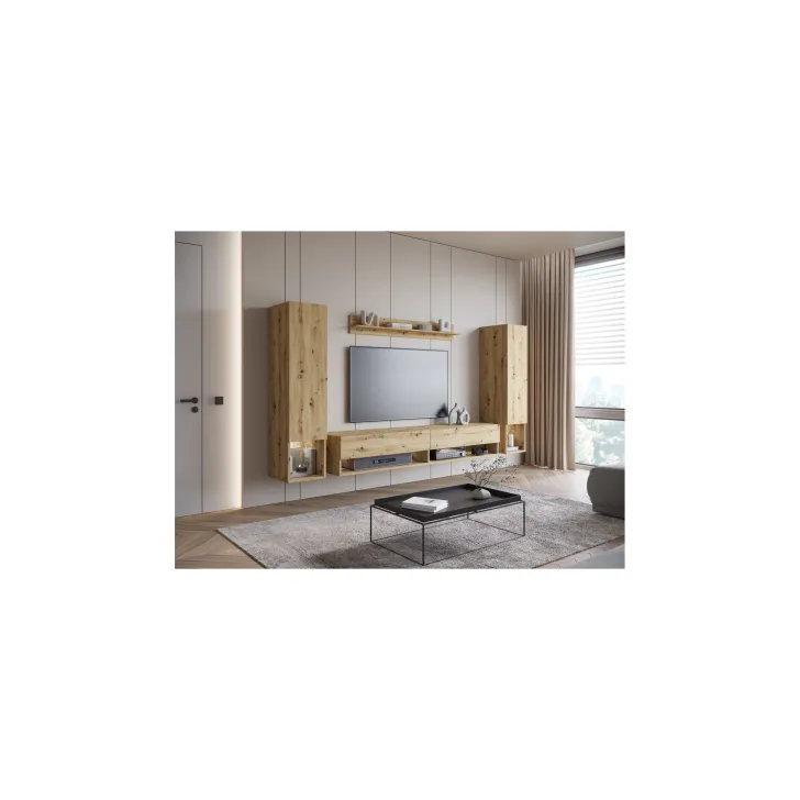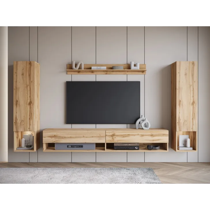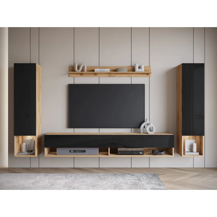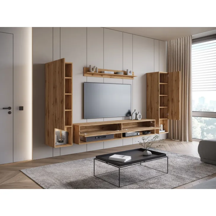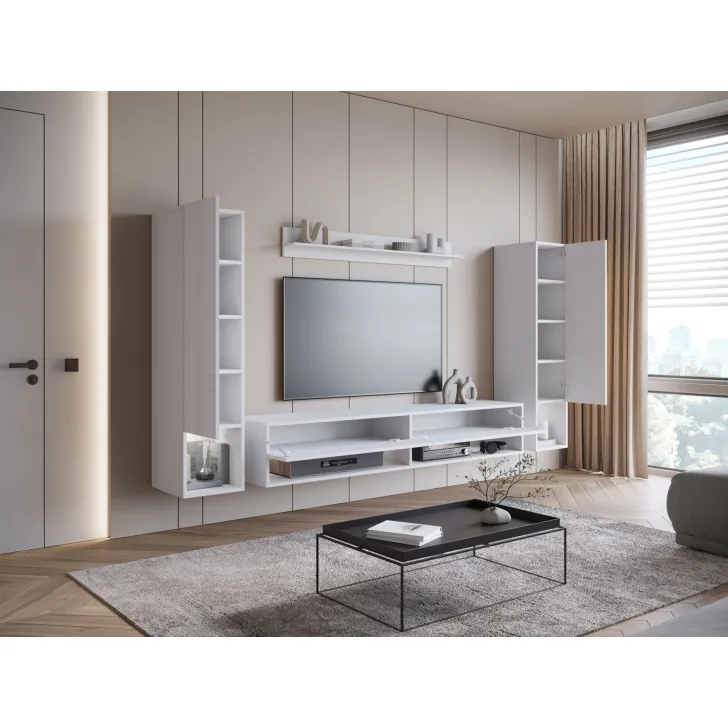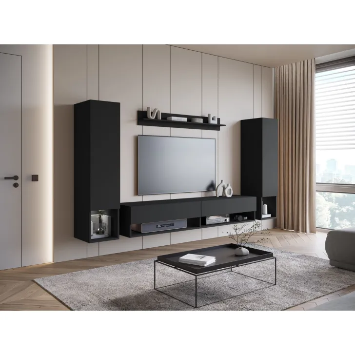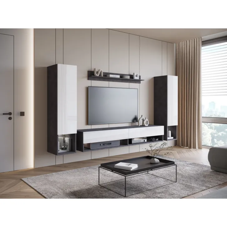Wisząca meblościanka AMY II stanowi perfekcyjne dopełnienie Twojego salonu. Meblościanka, która nie tylko jest elegancka, ale też praktyczna. Zapewnia wiele pomysłów na konfigurację przestrzeni oraz organizację rozmaitych przedmiotów, niezależnie od ich wielkości i przeznaczenia. Odkryj jej unikalne funkcje!