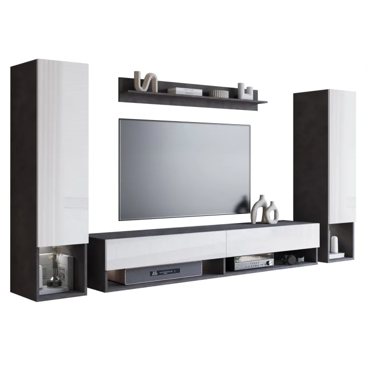 - Wysoka jakość wykonania - Korpusy i fronty meblościanki wykonane są z wytrzymałej płyty laminowanej o grubości 15mm, a ich krawędzie oklejone są estetycznym i odpornym obrzeżem ABS.