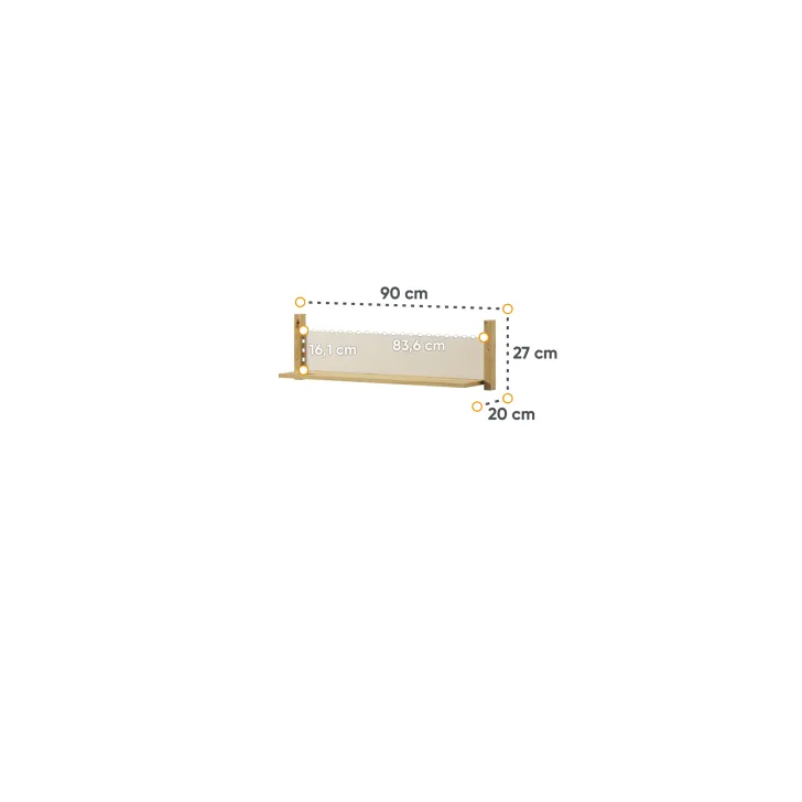 Wisząca półka ENNY charakteryzuje się uniwersalną kolorystyką – kombinacją dębu artisan, koloru beżowego oraz truflowego, co umożliwia jej wpasowanie się w niemal każdą aranżację pomieszczenia. Poprzez połączenie kilku oferowanych półek, masz możliwość kreatywnego zagospodarowania wolnej przestrzeni na ścianie.